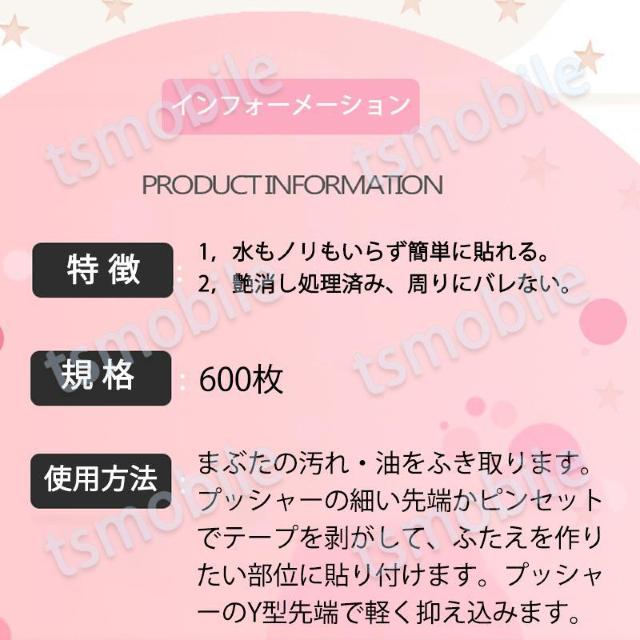 プッシャーの細い先端かピンセットでテープを剥がして、ふたえを作りたい部位に貼り付けます。