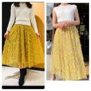リーフと花の刺繍を施したチュールスカート。明るいカラーリングがコーディネートを華やかにしてくれる一枚です。広がりすぎず、すとんと落ちるシルエットが上品。インナーと丈感をずらすことで透け感が生まれ、足首まわりをすっきりきれいに見せてくれます。ウエストはゴムなので締め付け感なく気軽に穿けるのもうれしいポイント。