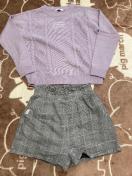 ニットは色が微妙だと試着だけして着ませんでした。タグは娘が切ってしまいました。模様編みは前身頃のみです。サイズS(160)です。色は画像1.2が近いです。ショーパンは一昨年に数回着用しましたがこの冬は一度も履きませんでした。サイズM(165)です。2点で5千円ちょいでした。