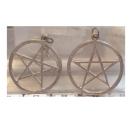 五芒星を織り交ぜた、お揃いのネックレスとイヤリングのセットです。 2 つのペンタクルはすべて直径 1 3/16 インチ、イヤリングの長さは 2 インチで片方です。