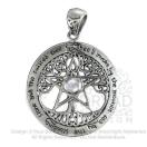 スターリングシルバー特大カットアウトツリーペンタクルペンダント、レインボームーンストーン付き