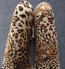 豹柄プリントにカモフラージュされ顔も描かれたワイルドなレギンスパンツ。
