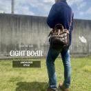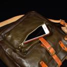 太めのショルダーベルトは硬めの蝋引きレザーを使用。