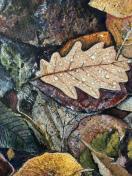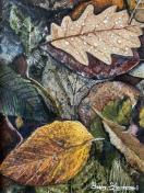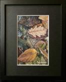 枯葉(落ち葉)は20代の頃からたまに描くことがあったモチーフで、だいたいが近視的な描き方で描いています。ただ、版画チックに描く手法を考えついて描いた時期があるのですが(まるで枯葉をそのまま水彩紙に写すように描く描き方)、やり方をすっかり忘れてしまい、尚且つ、その手法で描いた絵は全て売ってしまい、どうやってやったのか今となっては少々悔やまれます。が、筆等で淡々と描いていくのも味わい深くて良いかな? と、今では思っています。