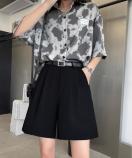 無地イージーパンツ/スーツショーパン黒/着やせ 半ズボン