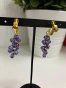 チェコビーズのしずく型ビーズを使用したぶどうのイヤリングになります。