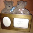 テディベアが2匹付いた可愛い写真立てです。木製枠でナチュラル。