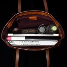 持ち手には硬めの光沢あるダークブラウンのレザーを使用。