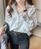 女性ファッション トップス シャツ/ブラウス(長袖) ストライプ フリーサイズ