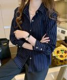 洗練されたシルエットを作り出すレディースストライプ柄シャツです