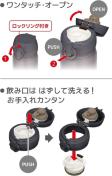 素材・材質:内びん:ステンレス鋼 / 胴部:ステンレス鋼(アクリル樹脂塗装) / フタ・せん本体・飲み口:ポリプロピレン / フタパッキン・せんパッキン:シリコーンゴム
