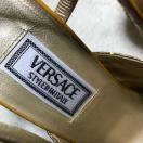 ヴェルサーチのレザーストラップヒールサンダルです。