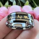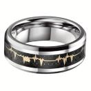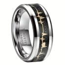 8mm メンズブラックカーボンファイバーリングハートビートパターンウェディングリング、面取りエッジブラックカーボンファイバーインレイドリング