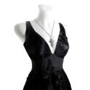 ツートーンのピューターで作られたベルチャースタイルのチェーンが、さらにクールさを引き立てています。このクロスペンダントは、ゴシックファッションを愛する人々にぴったりのアクセサリーです。日常のコーディネートにプラスすることで、個性的なスタイリングが可能です。