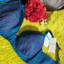 ●バストの突出をおさえ、トップの周径を効率的に減らすことで、着やせ効果のあるブラジャー ・バストサイドにハリのある薄く伸びない素材を使用し、脇のボリュームをおさえる