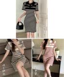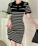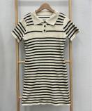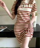 体にぴったりフィットして、ボディラインを魅せるボーダー柄ニットワンピースです