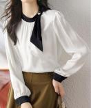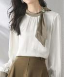 ボウタイネックの綺麗めなサテンブラウスです