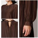 LilyBrownリリーブラウンオレンジブラウンテラコッタダークオレンジティアードロングワンピースシャツワンピースモックネックツヤ艶茶色
