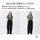 脇線をややカーブさせたストレートシルエットのサスペンダー付きパンツ。カジュアル素材の吊りデザインながら、子供っぽくなりすぎないシルエットがポイントです。付属のサスペンダーを取り外せば、腰にたらしても外しても、気分に合わせてスタイリングが楽しめます。シンプルなTシャツやタイトめのトップスをインするだけでサマになる1着。ネックや袖にデザインがあるとよりおしゃれな印象になるのでおすすめです。