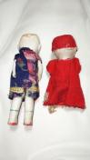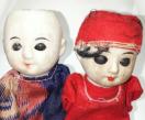 左側の人形は髪の毛が無く、右側の人形は破損していて胴体から下が欠損していて、2体とも汚れがあり状態が悪いです。