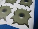 商品は、送料無料!6連発 45口径!弾痕! 撃たれちゃいました! 超リアル いたずら!ステッカー シール限定入庫 新品未開封品 ステッカーセットでございます。1枚のシートに6発の弾痕跡がございます。 弾の貫通部分は直径1センチです。とてもリアルなカラー仕上げで立体感も十分です!ご参考にして下さい。弾痕はそれぞれ切り抜きタイプと成っておりますので使用時には十分ご注意ください。 色合いがとてもリアルですよ!ベースカラーはグレー系ですから、凄くリアルです。但し、色合いはPCモニターの設定環境により実物とは異なる場合がございます。製品は生産工程時に発生したと思われる多少のむら・すれ・くすみ・くもり・細かい傷等ございます。画像にてご確認ください。また、色あせ・焼け・変色の可能性もございますので予めご了承下さい。商品は限定品です。ノークレームノーリターンでお願いします。