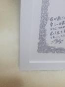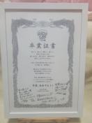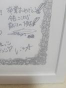 さかた校長、LiSA先生、こもり教頭の印刷のサインとメッセージ入り卒業証書です。