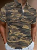 夏の日常やアウトドア活動にぴったりの、メンズのトレンディな迷彩柄の半袖ジップアップラペルシャツ