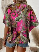 Paisley Print Vネックブラウス、春夏にぴったりのエレガントなショートスリーブトップ、女性用衣料品