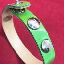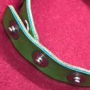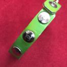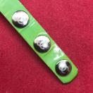グリーンのパテントレザーで、CoCoロゴのボタンが3つ付いています。