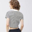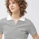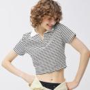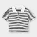 フィット感のあるシルエットがポイントのスキッパーポロ。ボタンのないデザインがカジュアルな抜け感を演出します。やわらかいスムース天竺素材を使用しているので着心地も抜群。コーディネートに取り入れやすくなるよう、控えめな細めのボーダー柄を採用しました。ローウエストボトムスやカーゴパンツと合わせたおなかだしスタイルがおすすめ。