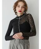 レース素材とワイドリブテレコ素材をドッキングした、モードな雰囲気漂うこだわりのトップス。