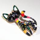 カラフルな猫のブローチです。黒色。