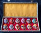 久しぶりに倉庫を片付けていたら出てきた中国京劇12支の変面です。京劇の変面自体は一子相伝の国家機密扱いらしいです。この商品は変面そのモノではなく、ネットでも恐らく書いてありませんが、一点一点職人が水溶性の塗料で描いている工芸品で、変面の12支のみというのはかなり珍しいです。12支は、日本の12支と違い、中国語の「猪」は豚(ぶた)を意味します。箱が以前落札された中国の鑑定書付き水晶と同じ? と思われるので、そこそこ古いモノだと思います。箱裏は少し汚れと小さな文字? がありますが文字は気にならない程度です(写真6参照)中身の12支変面はほぼ綺麗な状態です。