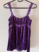 ユニクロ UNIQLO キャミソール S ベロア キャミ 紫 パープル 光沢 レース 洋服 レディース 服