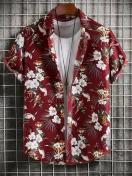 メンズハワイアンフローラルグラフィックパターンプリントシャツ、ラペルカラー半袖、ボタンダウンプラケット、夏のレジャーウェアや休暇に最適なカジュアルでシックなシャツ