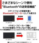 スマートフォンの音源を送信して聴く受信機能だけでなく、TY-AN1で再生した音源をお手持ちのBluetooth®イヤホン・スピーカーへ送信して聴くこともできます。 Bluetooth®送信機能は、ラジオ放送を聴くときにも使えるので、電波の届きにくい室内でAMラジオを聴く場合、受信レベルの良い窓際などにラジオ本体を置いてBluetooth®スピーカーへ送信すれば、室内の好きな場所で雑音の少ないクリアな音のラジオ放送を聞くことができます。