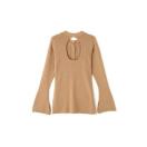 素肌をちら見せするバックオープンデザインのリブニット。