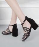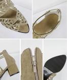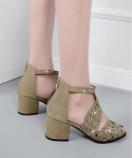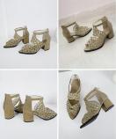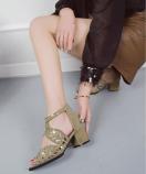 アッパーにラインストーンが入っており、キラキラと華やかに足元を演出するチャンキーヒールサンダルです