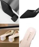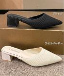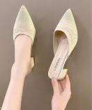 アッパーには通気性の良いニット素材を使用し、蒸れにくく快適のミュールパンプスです