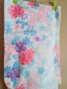 白地に桜などのお花が咲いて蝶が舞っている可愛い浴衣です。