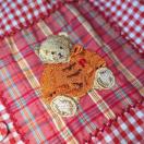 コレクション1993年秋、装苑にインタビュー記載有の大人気サンタくまちゃんとダッフルコートくまちゃんの刺繍パッチワークが裾にズラリと24枚も配されたギンガムフレアスカート