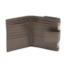 ■詳細説明/【人気商品】、<オフィディア>両面ホック開閉式2つ折り財布,グリーン×レッド×グリーンのウェブライン(シェリーライン)付き,ゴールドGGロゴ付き,パイピング部分&内側は、レザー(ブラウン),スナップボタン開閉式,カード入れ10、ポケット2、札入れ2、片側に小銭入れ