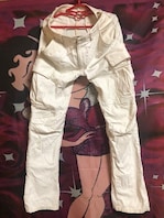 【コンディション】 ユーズドになります。使用感ございます。右脚太ももと、ひざ付近に若干折シワのやけがございます。味として育てみて下さい。その他は特に画像でお見せ致します気になるダメージ、汚れ等は見当たらないかと思います。
