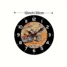 木製壁掛け時計、ビンテージモーターサイクルマップデザインの壁掛け時計、サイレントクロック、リビングルームベッドルーム、ルームデコレーション、ホームデコレーション、キッチン、オフィスデコレーション、
