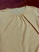 細かで柔らかなメッシュ系のナイロン生地、胸元ギャザーでラインは綺麗です。