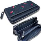 デニム生地にお花の刺繍が可愛らしいkate spadeの長財布。使いやすくて収納力たっぷりのラウンドファスナータイプ。