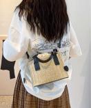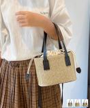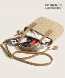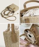 夏っぽい麦わら素材とフェイクレザーがカジュアルになり過ぎず、小さめで持ち運びも楽々!