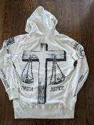 恐怖岬(ケープ・フィアー)に沈んだ復讐鬼のタトゥーを緻密に再現。胸には死神と裂けた心臓、背中には巨大な十字架が天秤となり、聖書とナイフが掛けられています。