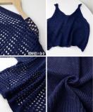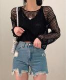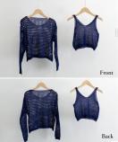 クロップド丈着やせ/薄手クロシェニット/ニットプルオーバー