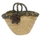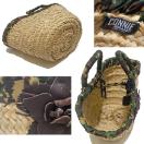 レザーのコサージュと迷彩のアクセントがお洒落なかごバッグ!CONNIE NO BRANDは、イタリア製のラグジュアリーブランドです。